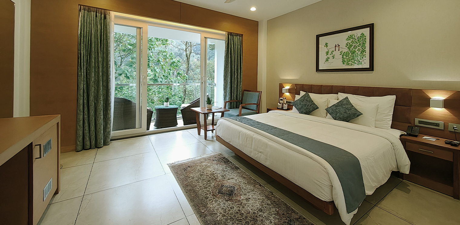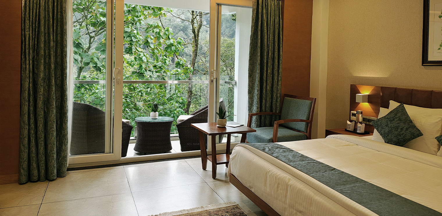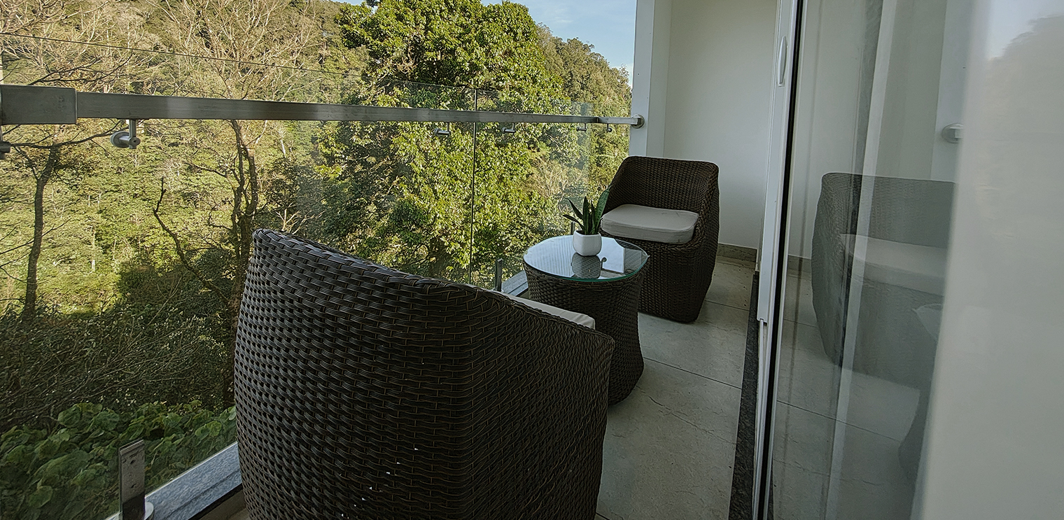 Experience ultimate luxury and tranquility in the Arbour Room, designed to offer a serene escape. This spacious room features a beautifully appointed bedroom, complemented by a private balcony that overlooks the lush, dense forest. As you relax on the balcony, immerse yourself in the soothing ambiance of the Western Ghats, where the sights and sounds of nature create an unforgettable atmosphere. Perfect for those seeking a blend of comfort, privacy, and natural beauty.